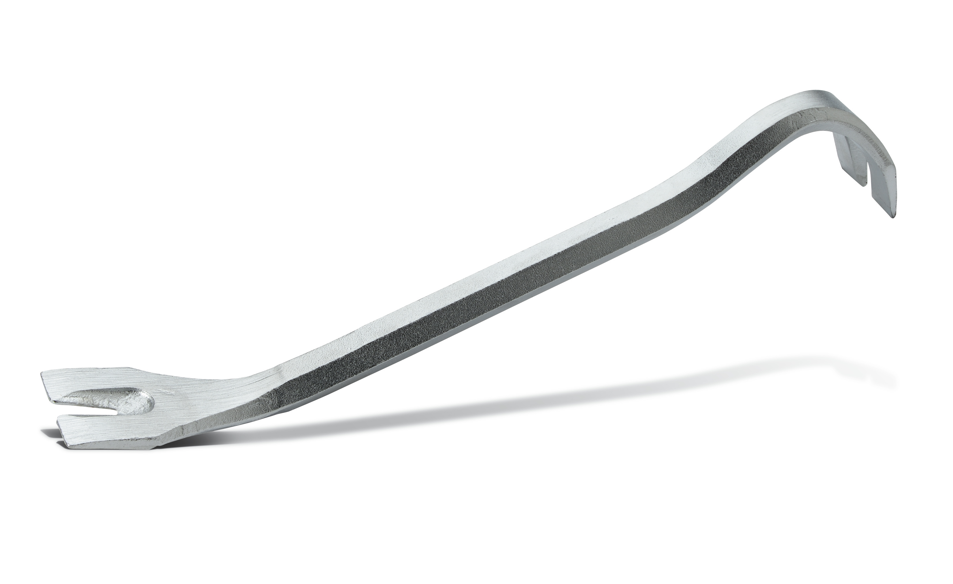 Aus Stahl geschmiedet und poliert. Eine Spitze leicht gekrümmt.